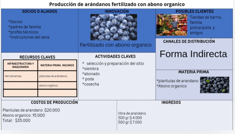 Aquí muestro el proyecto que nos fue elegido a mí junto con los otros integrantes del grupo, y se realizará la parte práctica del proyecto (RIARANCO) el siguiente año, este trata de la suministración de abono orgánico en el cultivo de arándanos para mejorar la calidad y la retención de agua en el suelo, y además para obtener frutos de calidad usando las (BPA).